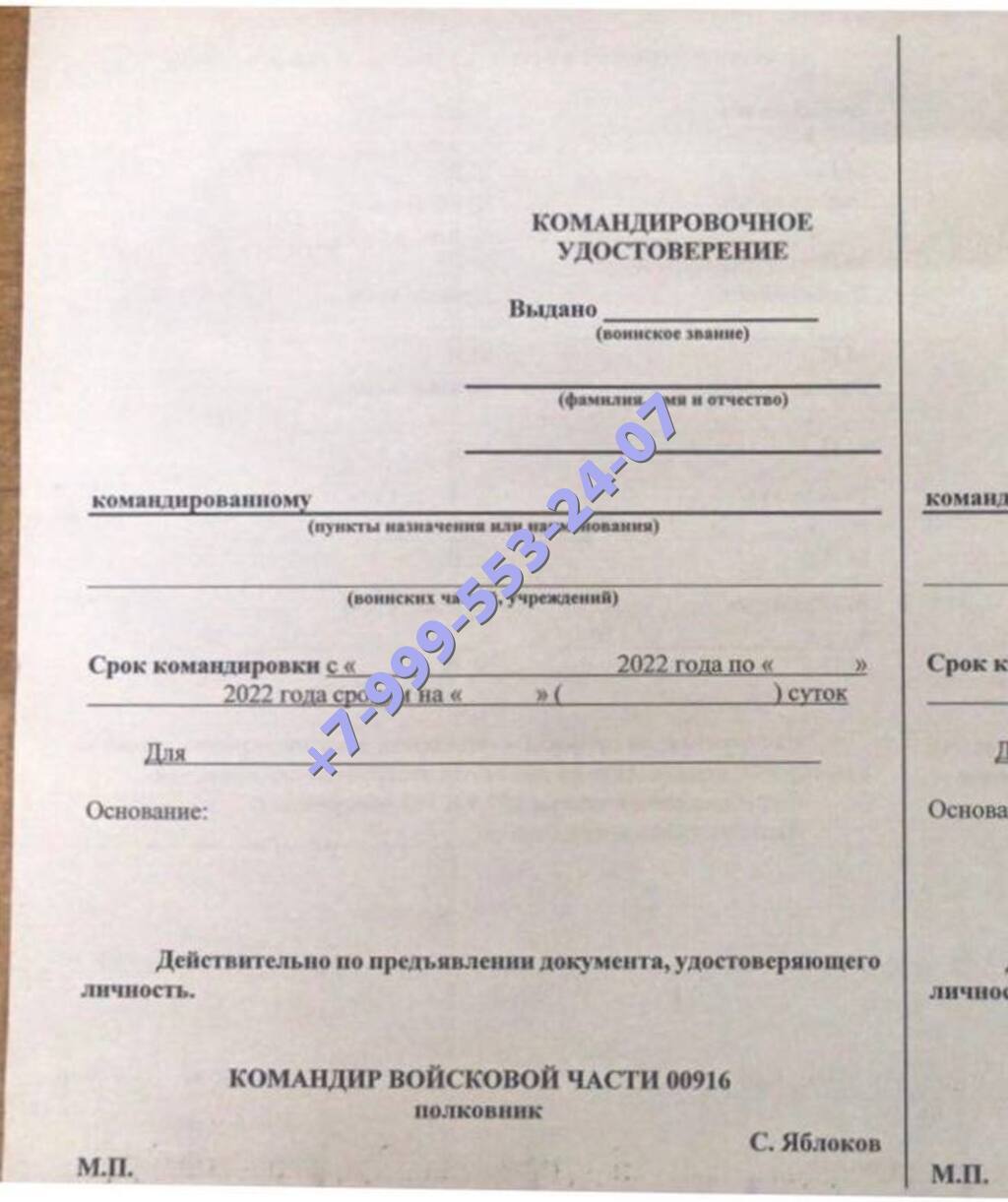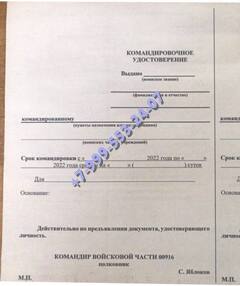 Заказать командировочное удостоверение военнослужащего в Арзамасе можно и по иным причинам, например, необходимо срочно ехать на учения или в зону боевых действий. В таком случае следует обращаться к руководству с заявлением. Если человек потерял, или испортил документы, он может обратиться в нашу компанию. Купить командировочное удостоверение военнослужащего с доставкой мы предлагаем недорого.